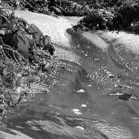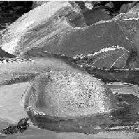 The moving water, reflections, somewhat hard to determine formations of