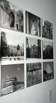 square tile near the entrance to each of his buildings....his signature, if you will. When I got serious about photography, I studied the reasons photos were typically 8x10 or similar, either portrait or landscape, they were still proportioned thusly. There are as many theories for this as there are people with theories....you can do your own homework, if you like, but I'm not gonna do it here. I weighed the options.....arranging multiple images on a wall, for example, would be easier and look better (more Architectural) if there were not a mix of vertical and horizontal frames. I would never have to hold my camera in the vertical postion. I could have an image hung in the wrong direction and nobody would notice (?)...well, probably not. Anyway, I decided to work in "Square", most of the time. There are obvious exceptions, but this is my rule. For those concerned about framing, there are a lot of commercially available square-format frames, out there. Not as many as there are for standard 8x10's, etc., but still quite a lot. Also, a square image, matted to fit a rectangular frame, can look very cool, if other factors are right. See some examples of a cluster of square photos below. |