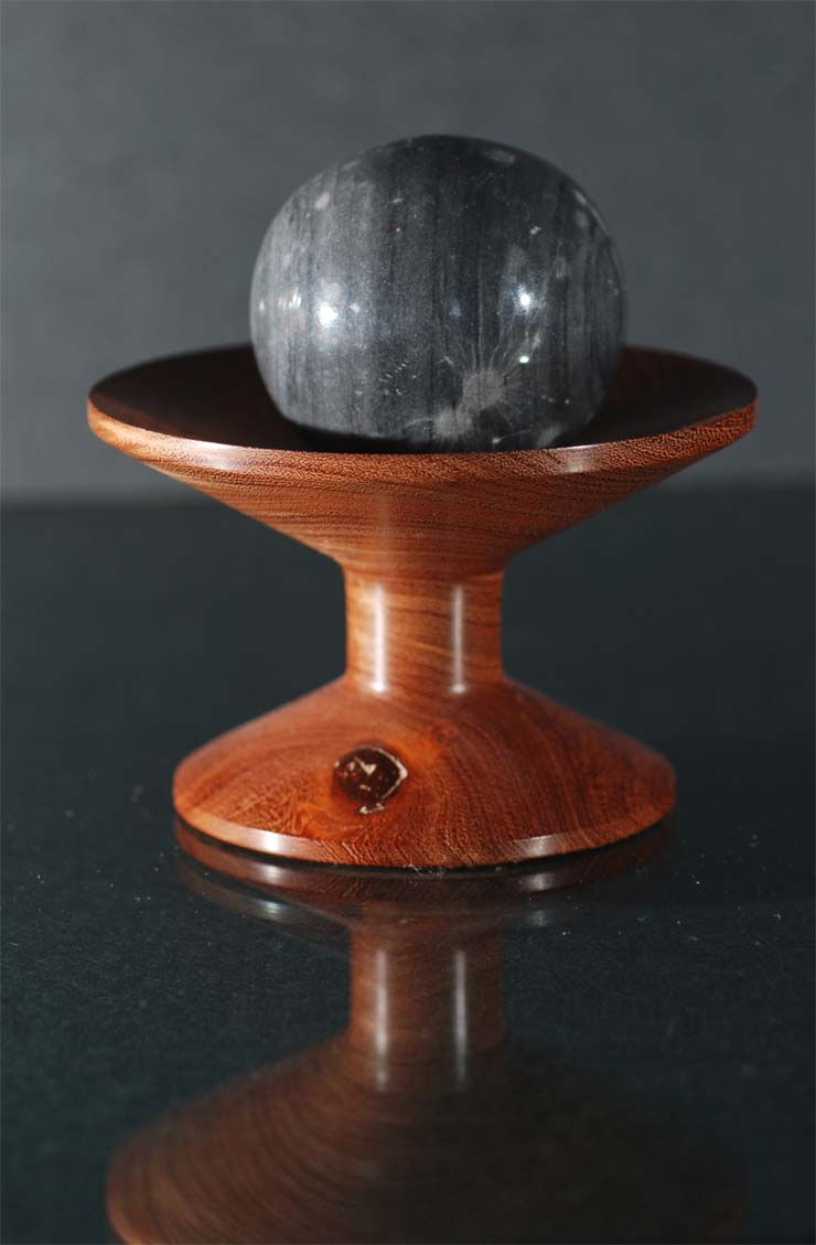 pedestal, upon which, rests an orb of stone.